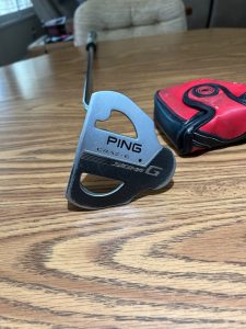A Ping 35” mallet putter with oversized grip. $45.00.